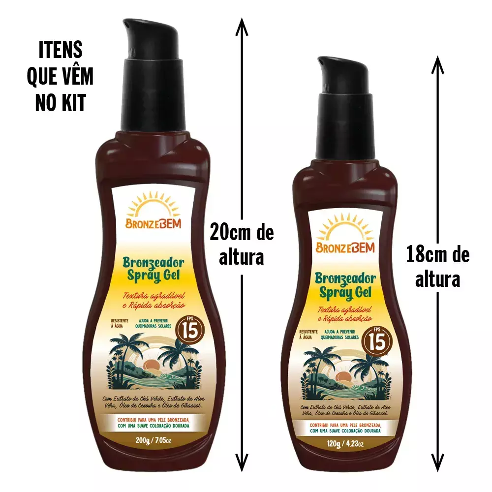 Kit com 2 produtos: Bronzeador em Spray Gel FPS 15 – 200g e Bronzeador em Spray Gel FPS 15 – 120g.
