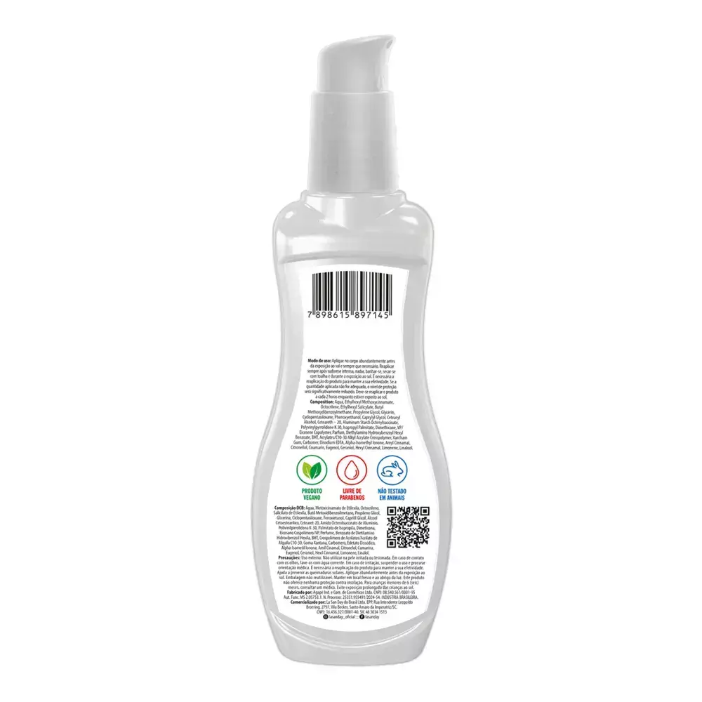 Aplique o protetor solar abundantemente no corpo antes da exposição ao sol e sempre que necessário. Para manter a proteção, reaplique o produto a cada 2 horas e após sudorese intensa, banho ou secagem com toalha.