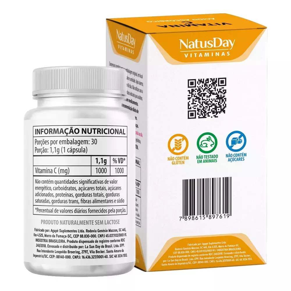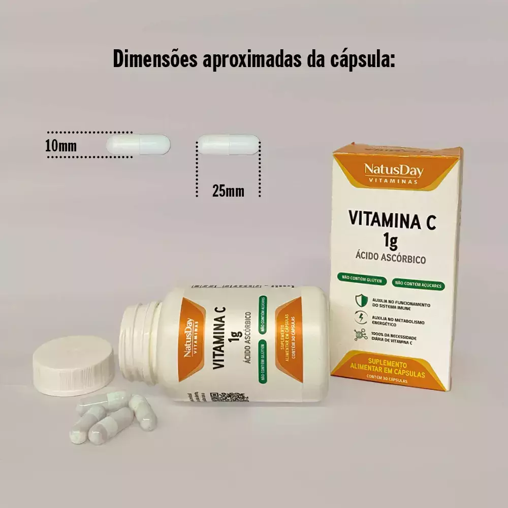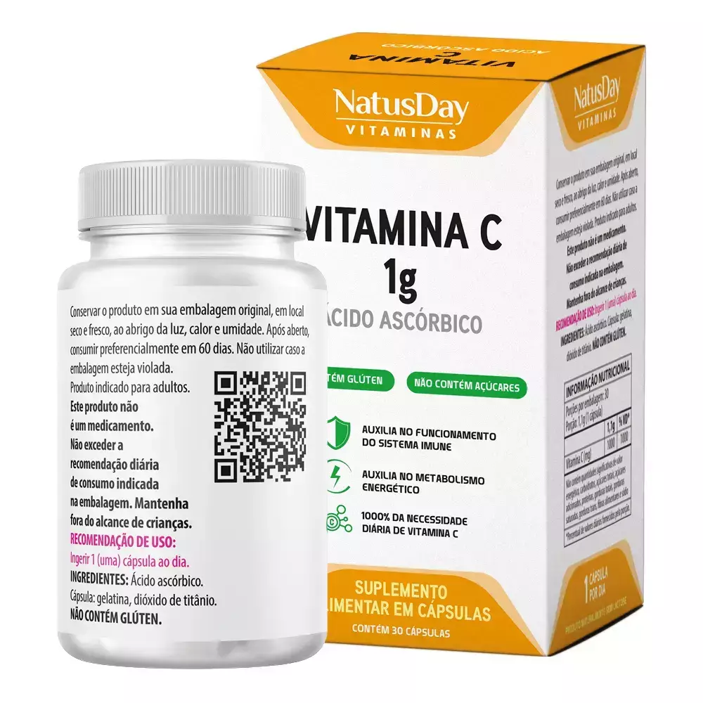 O Suplemento Alimentar de Vitamina C 1.000mg da Natusday foi desenvolvido para complementar a ingestão diária dessa vitamina essencial, que contribui para o funcionamento adequado do sistema imunológico e auxilia na proteção das células contra os danos causados pelos radicais livres. Além disso, a Vitamina C participa da formação de colágeno, favorecendo a saúde da pele, articulações e vasos sanguíneos.