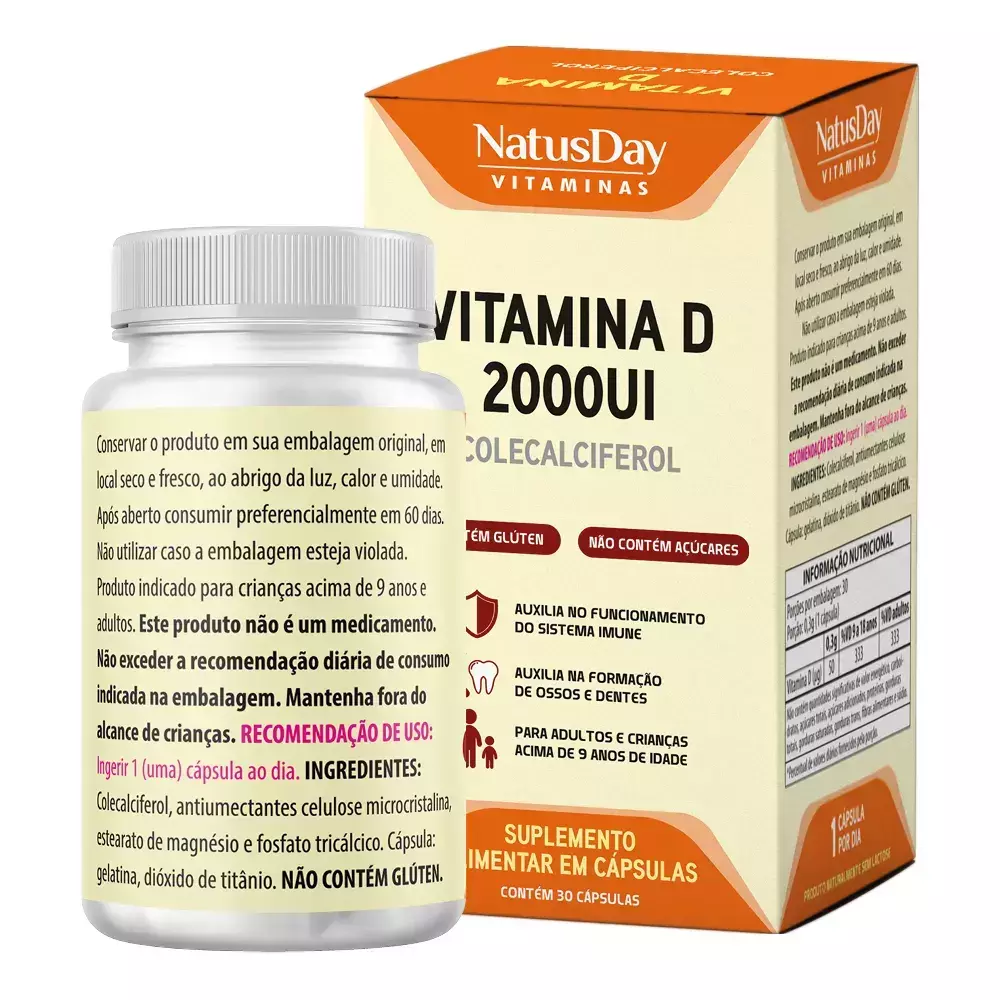 O Suplemento Alimentar de Vitamina D da Natusday foi desenvolvido para complementar a ingestão dessa vitamina essencial, que auxilia na absorção de cálcio e fósforo pelo organismo. Sua fórmula em cápsulas softgel práticas proporciona conveniência e facilidade no consumo diário.