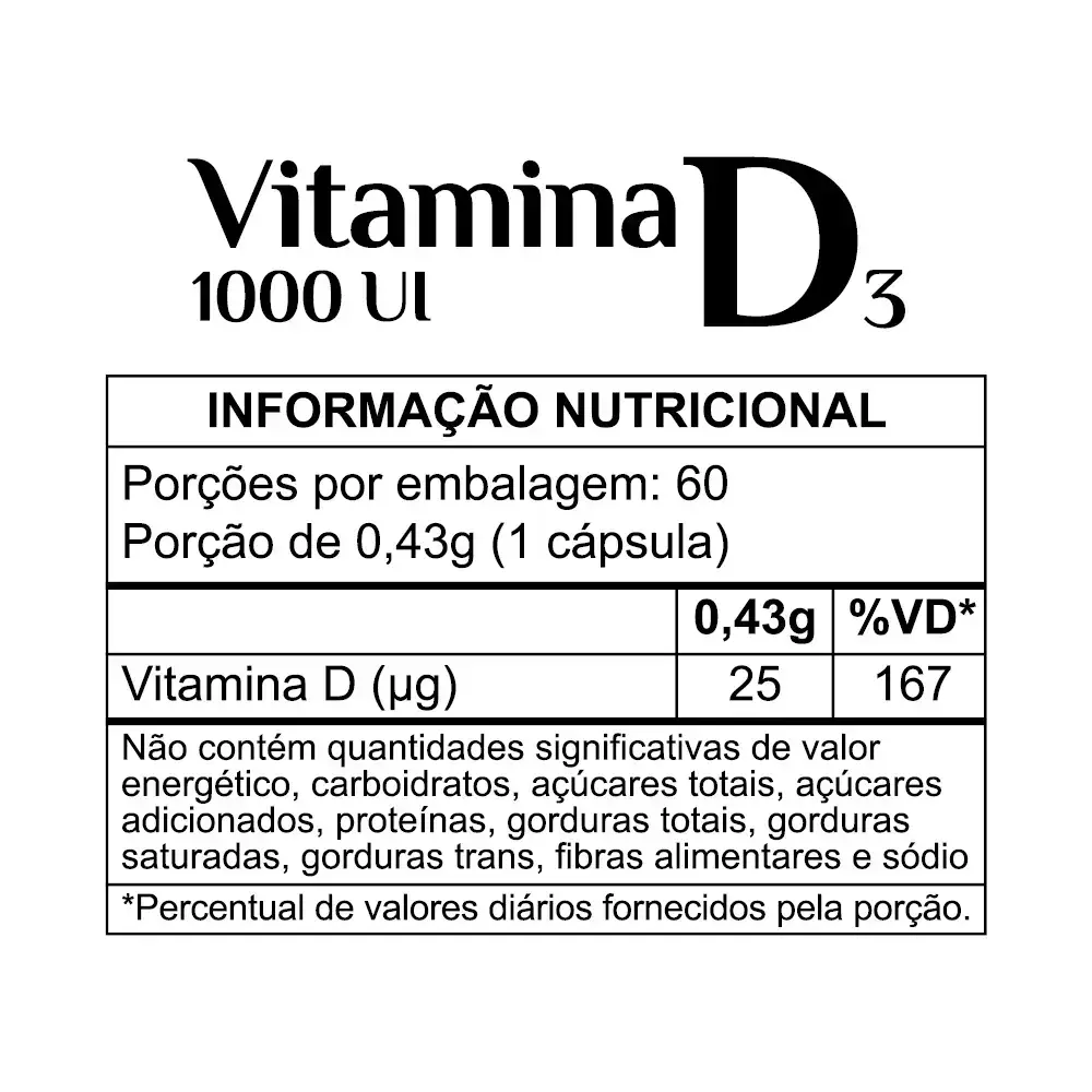 - Vitamina D3: Contribui para a manutenção de ossos e dentes saudáveis e auxilia no funcionamento muscular e do sistema imunológico.