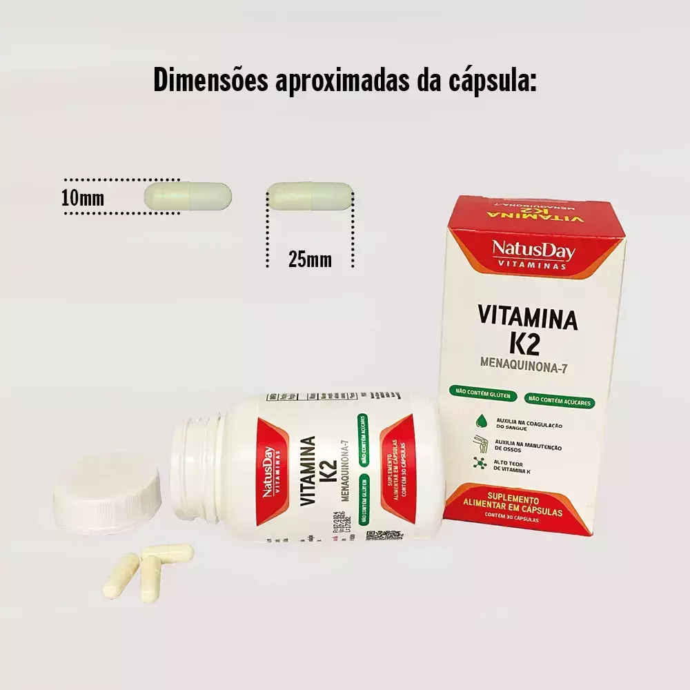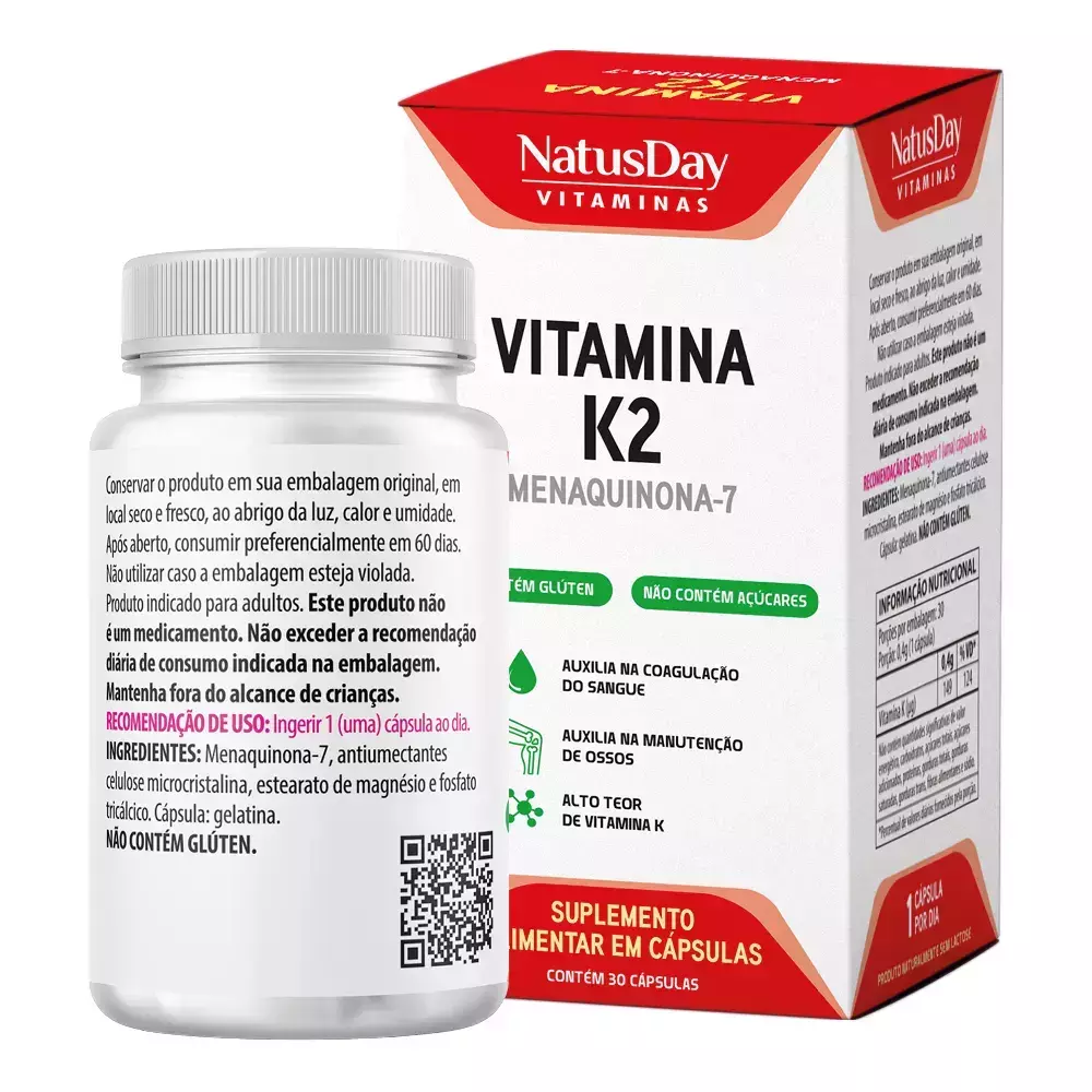 O Suplemento Alimentar de Vitamina K2 da Natusday foi desenvolvido para complementar a ingestão dessa vitamina essencial, que auxilia na manutenção da saúde óssea e no funcionamento adequado da coagulação sanguínea. Sua fórmula contém menaquinona-7 (Vitamina K2), uma forma altamente biodisponível, em cápsulas práticas e de fácil ingestão.