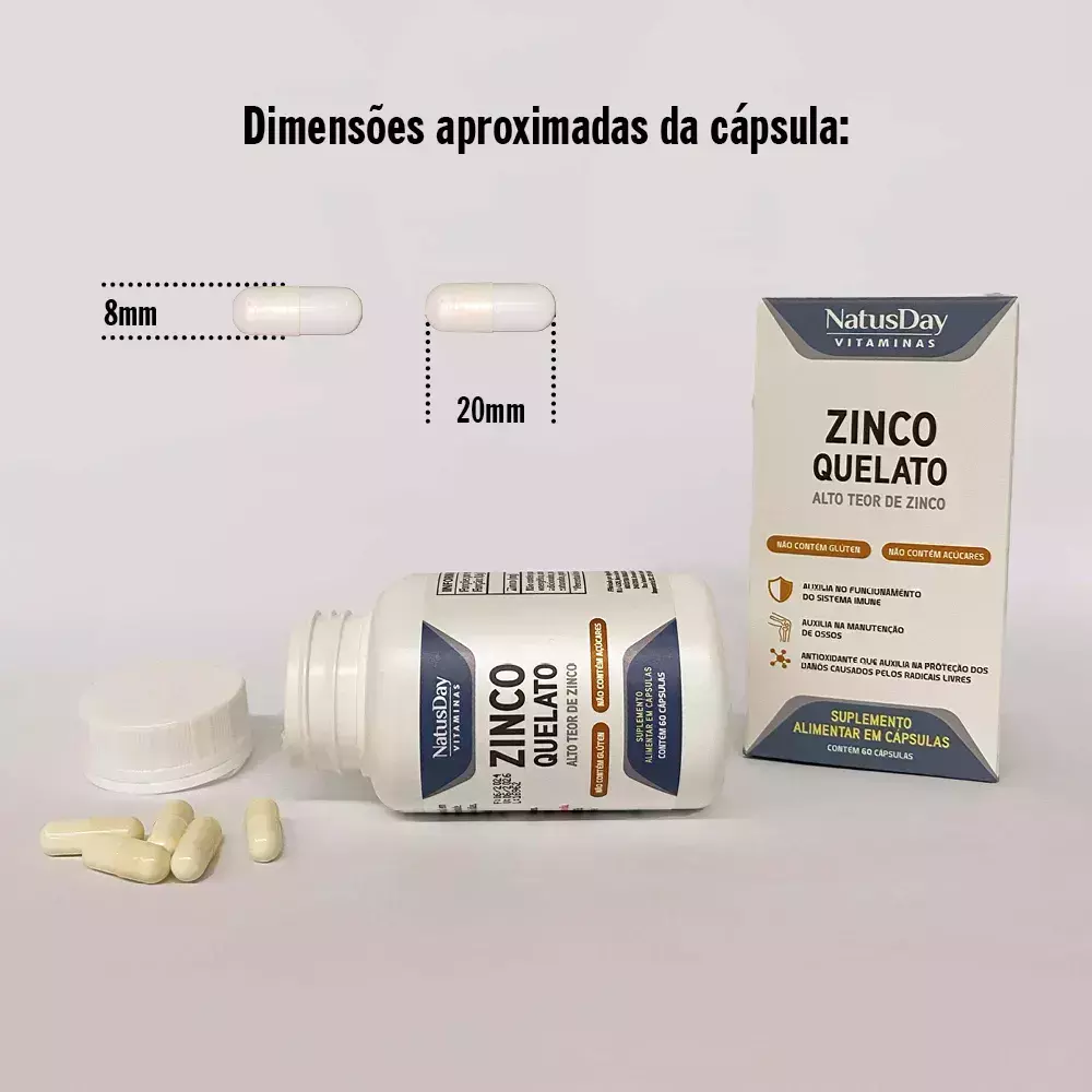- Alto teor de zinco: Cada cápsula fornece 29 mg do mineral.