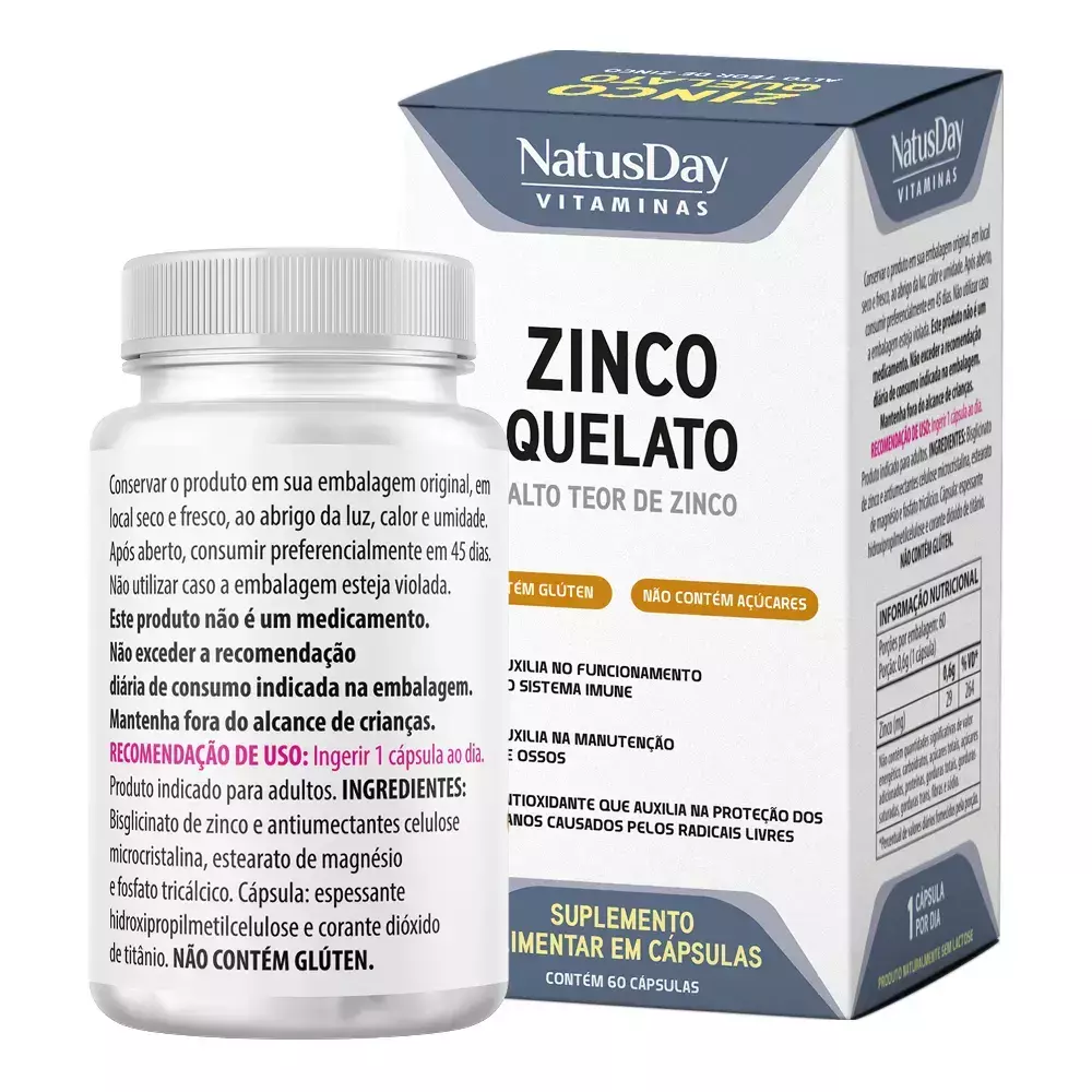 O Suplemento Alimentar de Zinco em Cápsulas foi desenvolvido para complementar a ingestão desse mineral essencial, que auxilia no funcionamento do sistema imune e no metabolismo de proteínas, carboidratos e gorduras. Em cápsulas práticas, oferece alta concentração de zinco com fácil consumo diário.
